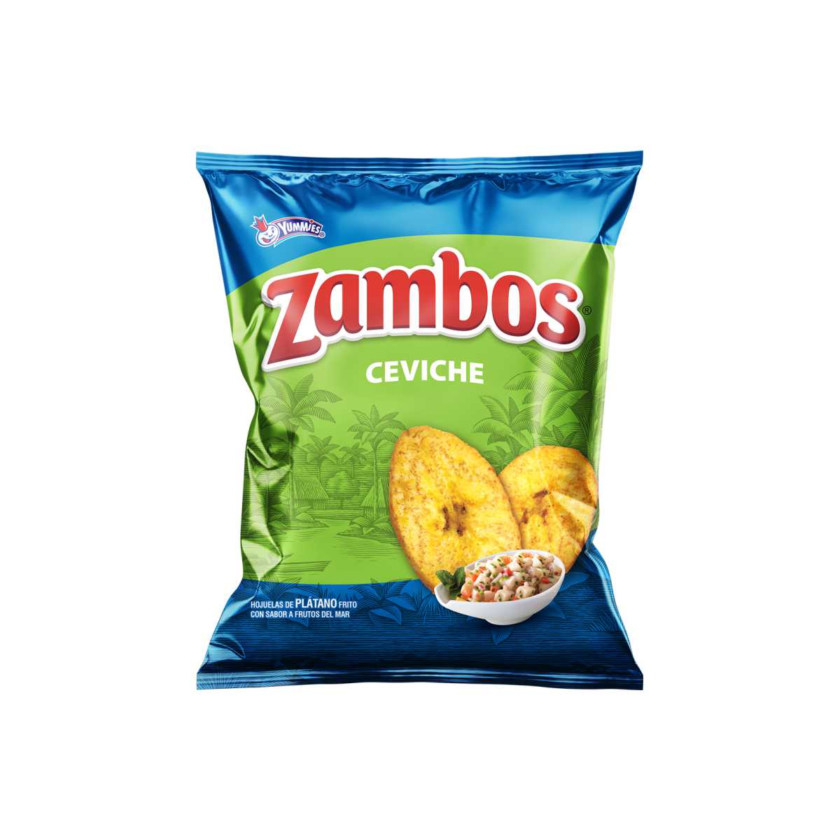 Un giro innovador en el sabor clásico de los Zambos. El toque ácido y salado del ceviche le da a estos chips de plátano un sabor refrescante e irresistible.